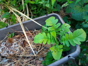 右: 夏を越して育つとは思っていませんが、気持ちの良い緑です。お盆過ぎには最初の種蒔きです。