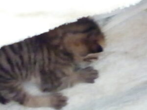 6時台、その10分後、小トラに呼ばれました。おしっこケアして呉れ~!また鳴いている。何だ?またおしっこでした。うんちは?抱くとゴロゴロ言うようになりました。また、鳴いている。鳴けば、来る!、と思ったのかな。もうそろそろ段ボールに空気穴を付けて痛風を一番上の部分で出来る様にしようかな。