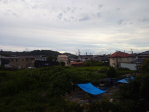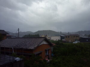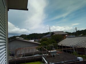 今朝採った茗荷を馬路村のポン酢に浸けました。お昼にあっさりとポン酢で食べたい。肉があれば肉もサッと炙ってポン酢で食べたいですね。現在の状態では少し北に赤い雲があります。写真は1時間後。