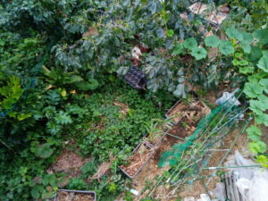 18時過ぎ、キョンが庭に入って物色中な処を発見。一階から出て行って声を掛けたら逃げて行きました。多分茗荷の辺りから入って来たのでしょう。キョン網を延長しましょう。念のため、草木灰を撒いて置きました。キョン網なんかいとも簡単に越えて行った、と思われます。多分、おたふくさんへ逃げた?
