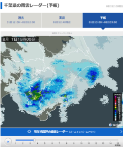 雷の音が暫くの間止んでいました。嵐の前の静寂?13時45分を過ぎた辺りから遠雷が聞こえ始めました。レーダー予想では上の様になりそうです。カラッカラだった地面に潤いを与えて呉れますね。北からの風に変わりました。洗濯物は既に取り込んでありますが、嵐の前の風ですね。暫くpcの電源を切ります。