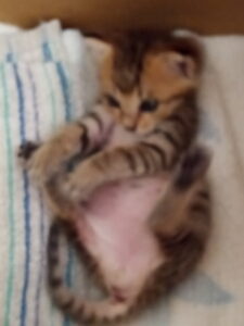 二回目のミルクタイムは6時でした。今回も10ml用意しました。足らなかったかな?哺乳瓶の乳首を中々放しませんでした。シーツの上で運動中です。丁度お日様がベッドに当たって来ました。自分の段ボール箱と相撲を取って負けたみたいです。笑 動きも早くなりましたので目が離せません。シャコタンじゃなくなって来ました。手足が伸びています。僅かかも知れないけれど筋肉が出来て来たのですね。