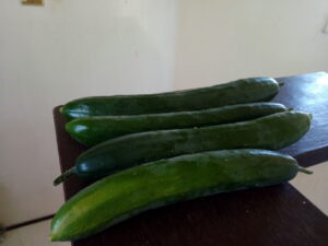 今朝の収穫は一本だとおもっていたら、胡瓜の収穫が二畝が3本、一畝で棚に上ったものから1本ありました。