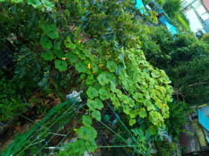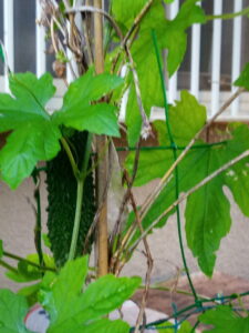 脇の通路のゴーヤが大きくなり始めています。ゴーヤは何本あっても良いですね。昔は一本を持て余したこともありました。笑