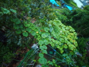 玄関前の鉢でトレニアが出て来ました。去年、Yさんの処から来た他の草花に混じって発芽したものの子供です。