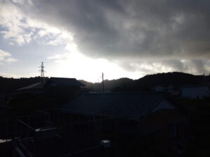 予想にない雨が4時前に降って来ました。こういう台風が南にある時期は油断がなりませんね。