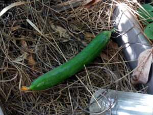 今日の収穫は一本かな、と帰りかけたら、大西条柿からぶらり!と下がった太い一本がありました。