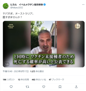 豪州政府は病院外でのイベルメクチンの使用を禁止して、567の治療にはイベルメクチンを使っているって!どこも医療は闇だらけだねぇ。