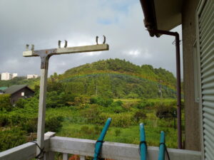 スコールが来たら、虹が現れました。